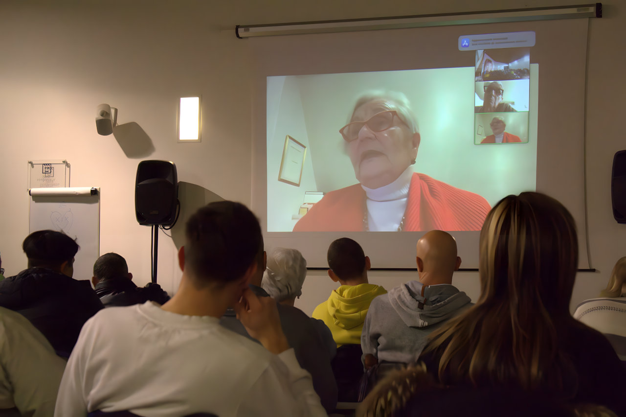 Nel terzo incontro del progetto abbiamo ospitato le sorelle italiane di origine ebraica, ANDRA e TATIANA BUCCI, superstiti dell’Olocausto, testimoni attive della Soah italiana e autrici di memorie sulla loro esperienza di sopravvissute ad Auschwitz, dove furono deportate da bambine. Con grande semplicità, umanità e forte impatto emotivo sono riuscite ad inviarci un importante messaggio di questa terribile esperienza che riportiamo con le loro parole: “…condividere la nostra vicenda personale ci ha reso più forti, perché ci ha permesso di passare dai ricordi individuali alla testimonianza attiva della storia…Le nostre vite sono diventate parte di un percorso, di un sentiero comune che ci ha segnato tutti”.